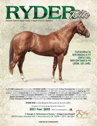 RYDER RITE is standing his first year at stud in 2021. Property of Cavenaugh Quarter Horses LLC 2021 Fee: $850 • With Considerations