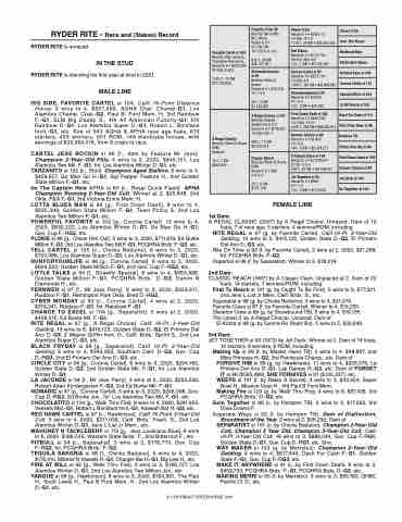 RITE REGAL si 97 (g. by Favorite Cartel). Calif Hi-Pt. 3-Year-Old Gelding. 13 wins to 5, $415,123, Golden State D.-G2, El Primero Del Ano D.-G3, etc.