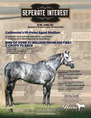 #1 LEADING 2020 SOPHOMORE SIRE IN CALIFORNIA #1 LEADING 2019 FRESHMAN SIRE IN CALIFORNIA