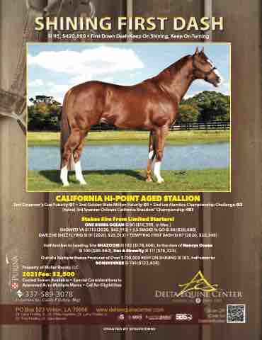 2nd Governor’s Cup Futurity-G1 • 2nd Golden State Million Futurity-G1 • 2nd Los Alamitos Championship Challenge-G2 (twice) 3rd Spencer Childers California Breeders’ Championship-RG1