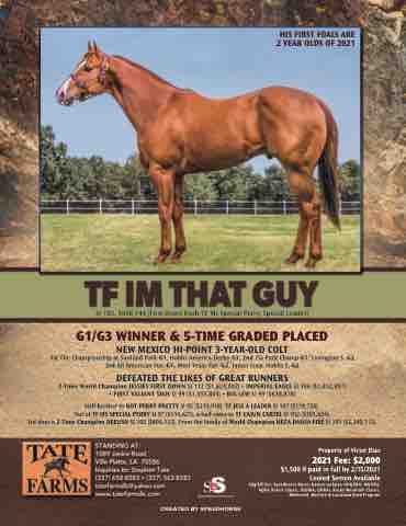 Out of TF MS SPECIAL PERRY SI 97 ($116,625), a half-sister to TF CAJUN CARTEL SI 102 ($303,624).