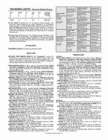 MOONIN THE EAGLE si 111 (c. by One Famous Eagle). Champion Aged Stallion. 7 wins to 4, $556,100, Remington Park Invit. Champ-G1, South Florida D., Hialeah Mat., etc., Ntr HIA 440. (twice), Ntr RP 440yds.