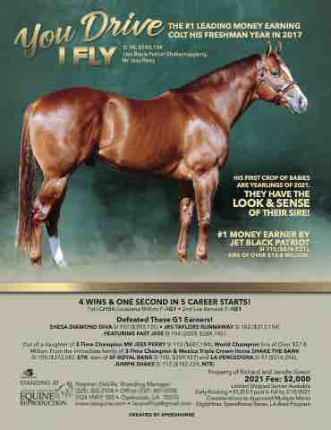 Limited Shipped Semen Available Early Booking • $1,250 if paid in full by 2/15/2021 Considerations to Approved/Multiple Mares Eligibilities: Speedhorse Races, LA Bred Program