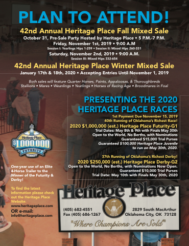 Trial Dates: May 8th & 9th with Finals May 30th Open to the World, No Berths, with Nominations Guaranteed $15,000 Trial Purses Guaranteed $100,000 Heritage Place Juvenile to run on May 30th, 2020.