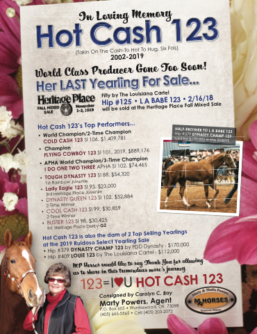 Hot Cash 123 is also the dam of 2 Top Selling Yearlings at the 2019 Ruidoso Select Yearling Sale