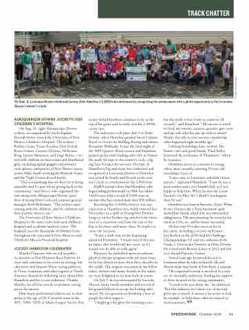 “This is something that we have been doing annually, and it’s part of our giving back to the community,” said Stover, who organized the visit along with Albuquerque Downs’ presi- dent of racing Don Cook and assistant general manager Beth McKinney. “The jockeys enjoy visiting with the children, and the children and their parents enjoy it, too.”