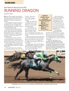 Running Dragon became a stakes win- ner in just her second out. The first place check of $140,025 boosted her total bankroll $145,380. The gray filly is now 2 for 2, a race record that brings thoughts of a great future.