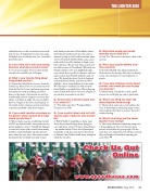 A: That the performance enhancing drug issue is being addressed. Also, for the most part, owners and trainers are great people. On the track they are competitors, but off the racetrack they are friends and would do anything for each other.