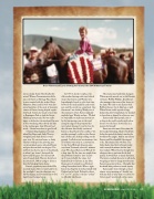 up. It was probably the chase. As I headed back to the barn in my John Deere gator, I turned to see Richard riding Eastex bare back. What a sight. Eastex was big, but he looked small with Richard on his back. Richard is about 6’5” or 6’6”, and he is the last “jockey” to officially ride Eastex.