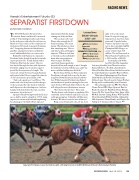 Bred in Texas by Narciso Flores, Separatist Firstdown is the only foal to race for the win- ning First Down Dash mare Shesa Firstdown Jess. While Separatist Firstdown has flashed