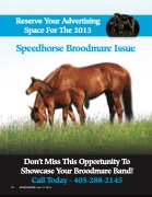 Reserve Your Advertising Space For The 2013 Speedhorse Broodmare Issue Don’t Miss This Opportunity To Showcase Your Broodmare Band! Call Today - 405-288-2145 72 SPEEDHORSE, April 12, 2013
