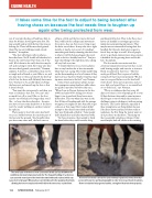 The foot needs concussion and the continual expansion/contraction that occurs with bearing weight and exercise to increase blood circulation in their feet. “The foot needs good blood flow to grow a healthy, strong hoof that functions properly. We also want to see good balance so the hoof wall won’t distort from uneven pressure and cre- ate a dish or a lateral flare, or too much heel or too little heel,” says Norman.