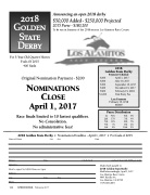 2018 Golden State Derby G Nomination Deadline - April 1, 2017 G For foals of 2015 Name of Horse Sex Sire Dam