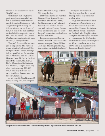 year with a win at Century Downs. It was an emotional year for all of Toughie’s connections, as they knew it would be her last.
