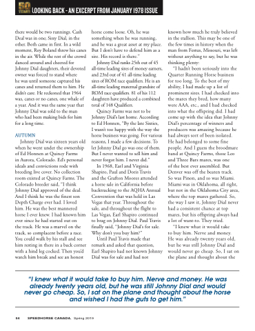 “I knew what it would take to buy him. Nerve and money. He was already twenty years old, but he was still Johnny Dial and would never go cheap. So, I sat on the plane and thought about the horse and wished I had the guts to get him.”