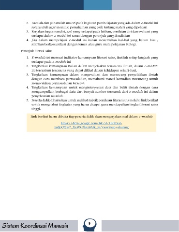 1. E-module ini memuat indikator kemampuan literasi sains, ikutilah setiap langkah yang