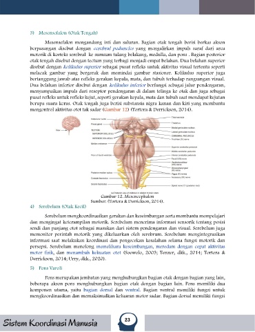 Mesensefalon mengandung inti dan saluran. Bagian otak tengah berisi berkas akson