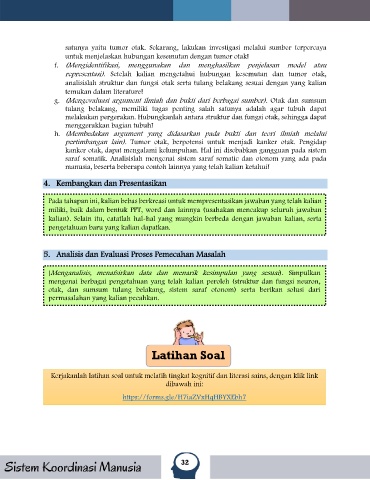 g. (Mengevaluasi argument ilmiah dan bukti dari berbagai sumber). Otak dan sumsum