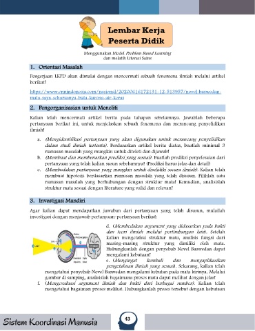 Pengerjaan LKPD akan dimulai dengan mencermati sebuah fenomena ilmiah melalui artikel