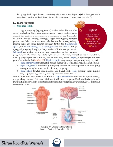 permukaan atas lidah (Gambar 19). Tiga jenis papila yang mengandung kuncup pengecap yaitu: