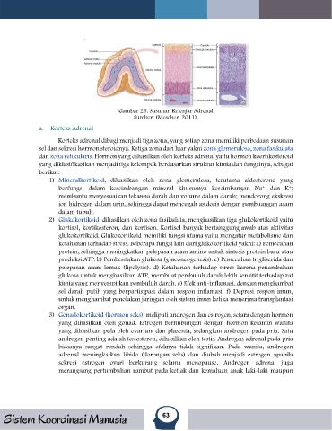 sel dan sekresi hormon steroidnya. Ketiga zona dari luar yakni zona glomerulosa, zona fasikulata