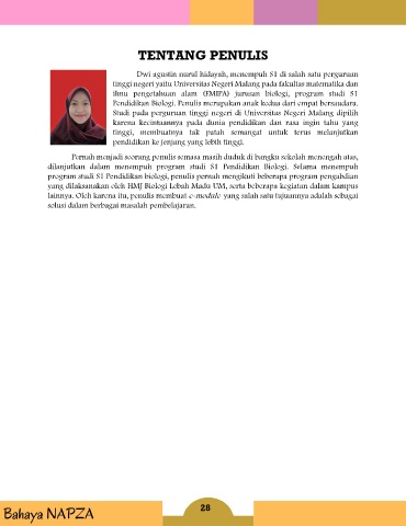 Pendidikan Biologi. Penulis merupakan anak kedua dari empat bersaudara.