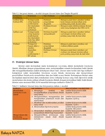Tabel 3. Indikator Literasi Sains dan Integrasinya dalam e-module