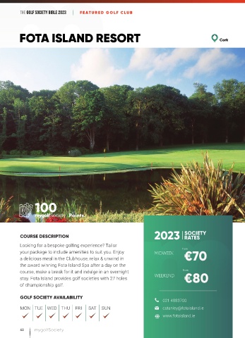 stay. Fota Island provides golf societies with 27 holes WEEKEND €80