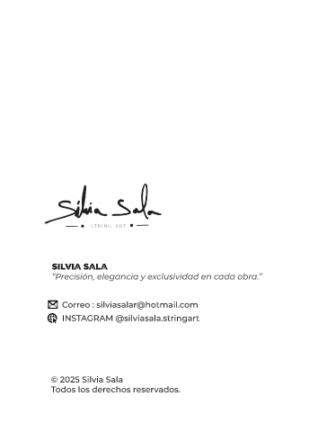 S T R I N G A R T SILVIA SALA “Precisión, elegancia y exclusividad en cada obra.” Correo : silviasalar@hotmail.com INSTAGRAM @silviasala.stringart © 2025 Silvia Sala Todos los derechos reservados.