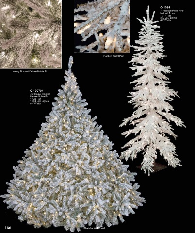 C-1094 7’ Flocked Pistol Pine Natural Trunk 1,217 Tips 350 LED Lights 45” Width Flocked Pistol Pine Heavy Flocked Deluxe Noble Fir C-190704 7.5’ Heavy Flocked Deluxe Noble Fir 1,773 Tips 1,050 LED Lights 86” Width 166 Stands Included