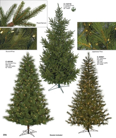 C-142710 9’ Royal Spruce 2,520 Tips 60” Width Royal Spruce Scotch Pine Japenese Pine C-60821 8.5’ Japanese Red Pine C-83348 560 Tips 8.5’ Scotch Pine 300 Clear Lights 806 Tips 65” Width 350 LED Lights 62” Width 1 1886 6 Stands Included