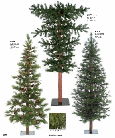 C-882 7.5’ Umbrella Pine Natural Trunk 570 Tips 66” Top Width C-874 7’ Bristle Pine Natural Trunk 459 Tips 36” Width C-0780 7’ Needle Pine Natural Trunk 403 Tips 33 Pine Cones 48” Width Needle Pine Tree 18 1888 Stands Included