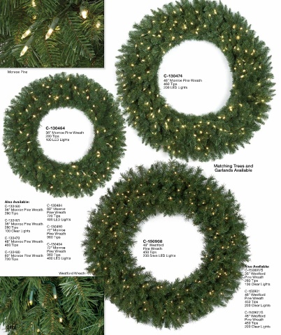 60” Monroe Pine Wreath 960 Tips 200 5mm LED Lights