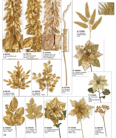 23.5” Magnolia 15.5” Glittered 31” Metallic/Glittered 21” Poinsettia Stem 17” Metallic/