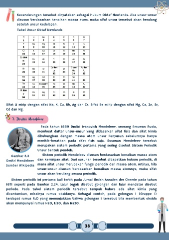 disusun berdasarkan kenaikan massa atom, maka sifaf unsur tersebut akan berulang