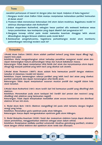 Kelebihan: Mulai mengembangkan minat terhadap penelitian mengenai model atom dan