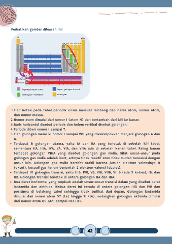 1. Tiap kotak pada tabel periodik unsur memuat lambang dan nama atom, nomor atom,