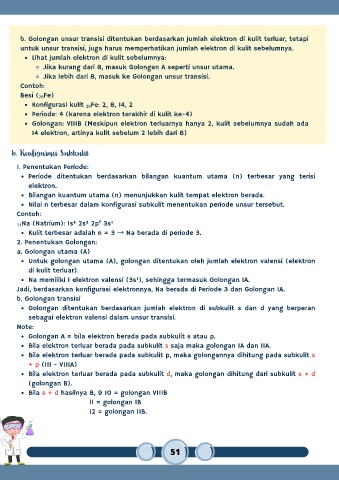 b. Golongan unsur transisi ditentukan berdasarkan jumlah elektron di kulit terluar, tetapi