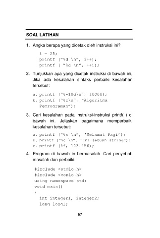 3. Cari kesalahan pada instruksi-instruksi printf( ) di