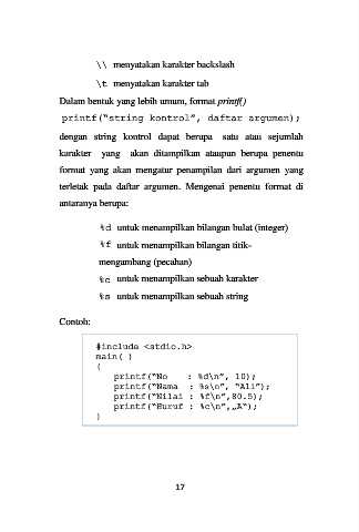 printf(“Nama : %s\n”, “Ali”);