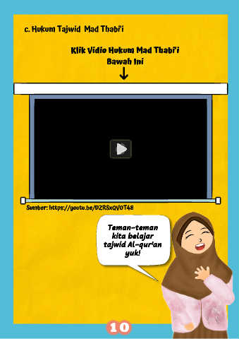 c. Hukum Tajwid Mad Thabi'i Klik Vidio Hukum Mad Thabi'i Bawah Ini Sumber: https://youtu.be/DZRSxQV0T48 Teman-teman kita belajar tajwid Al-qur'an yuk!