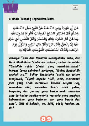e. Hadis Tentang Kepedulian Sosial