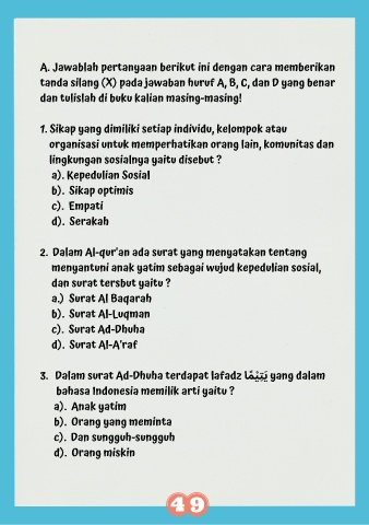 A. Jawablah pertanyaan berikut ini dengan cara memberikan