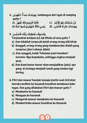 d). Memberitahu mawar kesulitan bu Hasanah