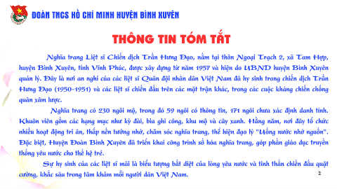 Đặc biệt, Huyện Đoàn Bình Xuyên đã triển khai công trình số hóa nghĩa trang, góp phần giáo dục truyền