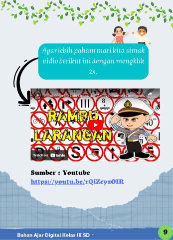 Agar lebih paham mari kita simak vidio berikut ini dengan mengklik 2x. Sumber : Youtube https://youtu.be/rQiZcyzOIR 9 Bahan Ajar Digital Kelas III SD