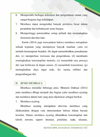 Karim (2014) juga menyatakan bahwa membaca merupakan
