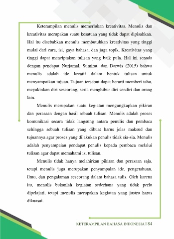 Keterampilan menulis memerlukan kreativitas. Menulis dan