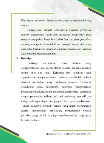 ataupun merasakan yang dituliskan tersebut. Deskripsi