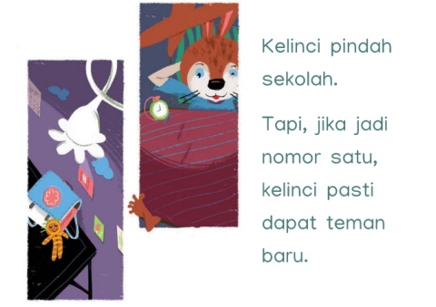 Kelinci pindah sekolah. Tapi, jika jadi nomor satu, kelinci pasti dapat teman baru.